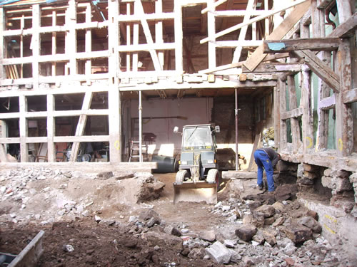 Anforderung: sensible Fachwerkteile erhalten und unterbauen.